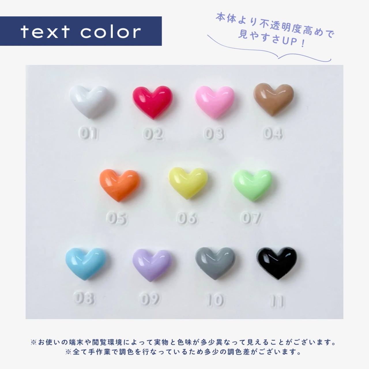 ⚫︎ レジンの性質上、紫外線や経年により徐々に黄変(変色)する可能性があります。
